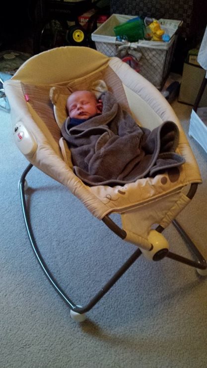 –Before we ended up purchasing our Rock n Play Sleeper and we attempted to make the crib work we took a bath towel and rolled it up and put it under the head of the crib mattress to give it a little elevation. This worked for a while, but we think that he too did not like the open area in the crib; so we had to find another sleeping option which led us to #2.