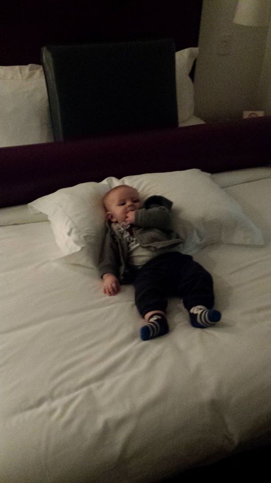 So once we get walking up to the train station I was already wore out and I had to carry my suitcase up about 14 steps. Luckily there was a man coming and I asked if he could help me carry the suitcase up the stairs as my hands were already full. Thankfully he did without hesitation. Then I get inside and the waiting area inside the station is absolutely packed. I buy my ticket and wait the next ten minutes to board our train. I text Brent and tell him that so far my traveling experience has been horrible and I just wanted to cry. My pants and feet were soaked, my child didn’t have a hat, I was burning up and I was waiting for Grayson to start crying. Thankfully there is a baby store down the road from Brent’s work so he ran and got a hat (it ended up being too small, but wore it until we found another at a little shop outside our hotel. Mind you when a hat says “one size fits all” they do not always fit.) Once on the train there was no sitting room, the aisles were packed and we all looked like a bunch of crammed sardines. After about five minutes a girl stood up and told me I could have her seat as she was getting off at the next stop and I had a baby. So thankful for her and the man who helped me get my suitcase on the train. This was Grayson and I’s first trip to NYC on the train by ourselves and he slept the entire way up to the last ten minutes.