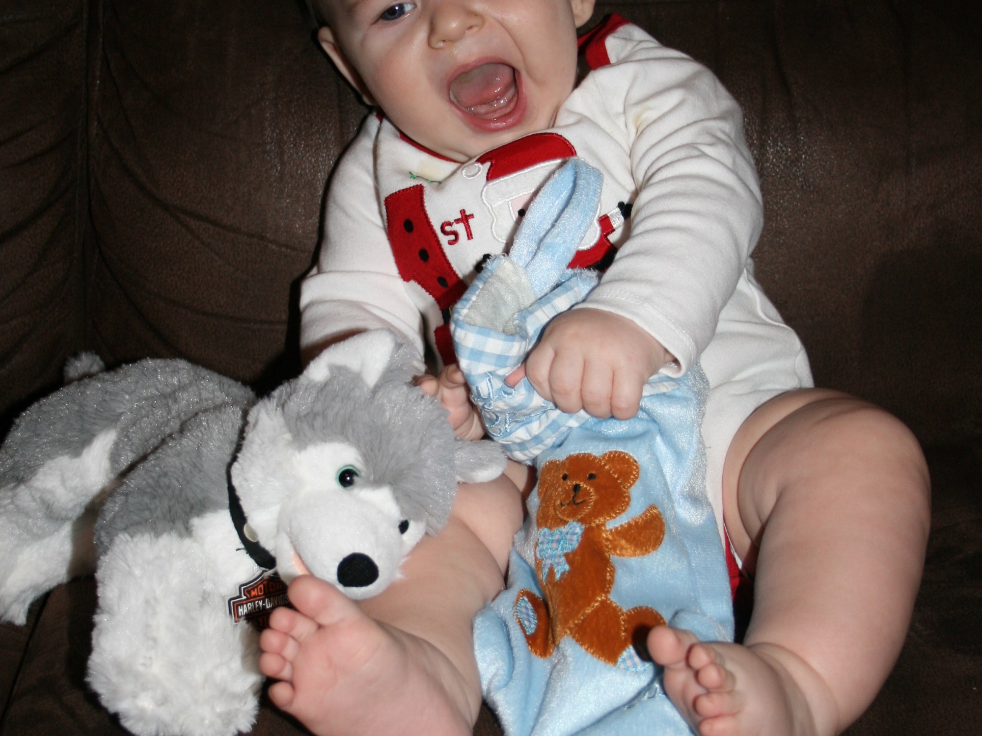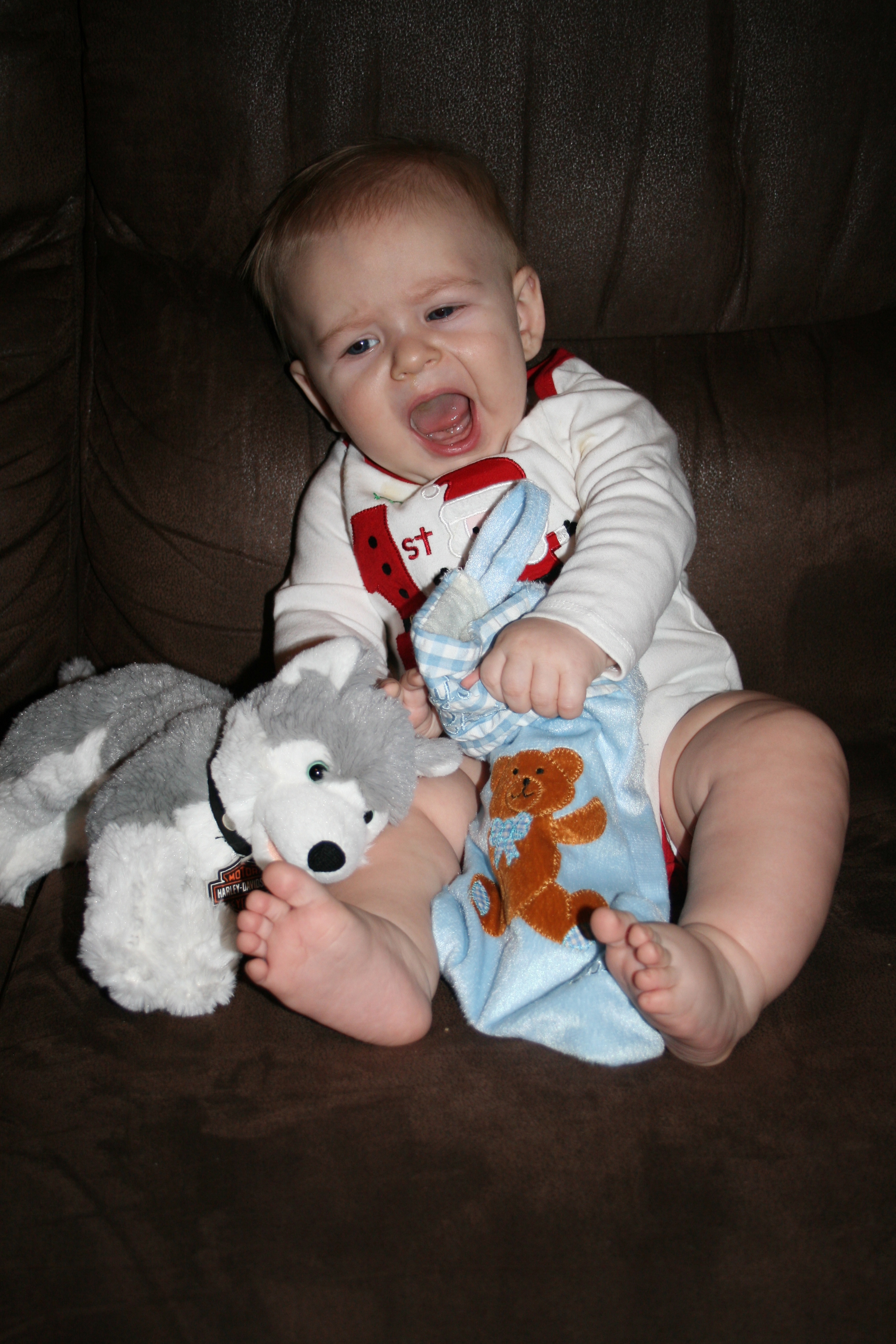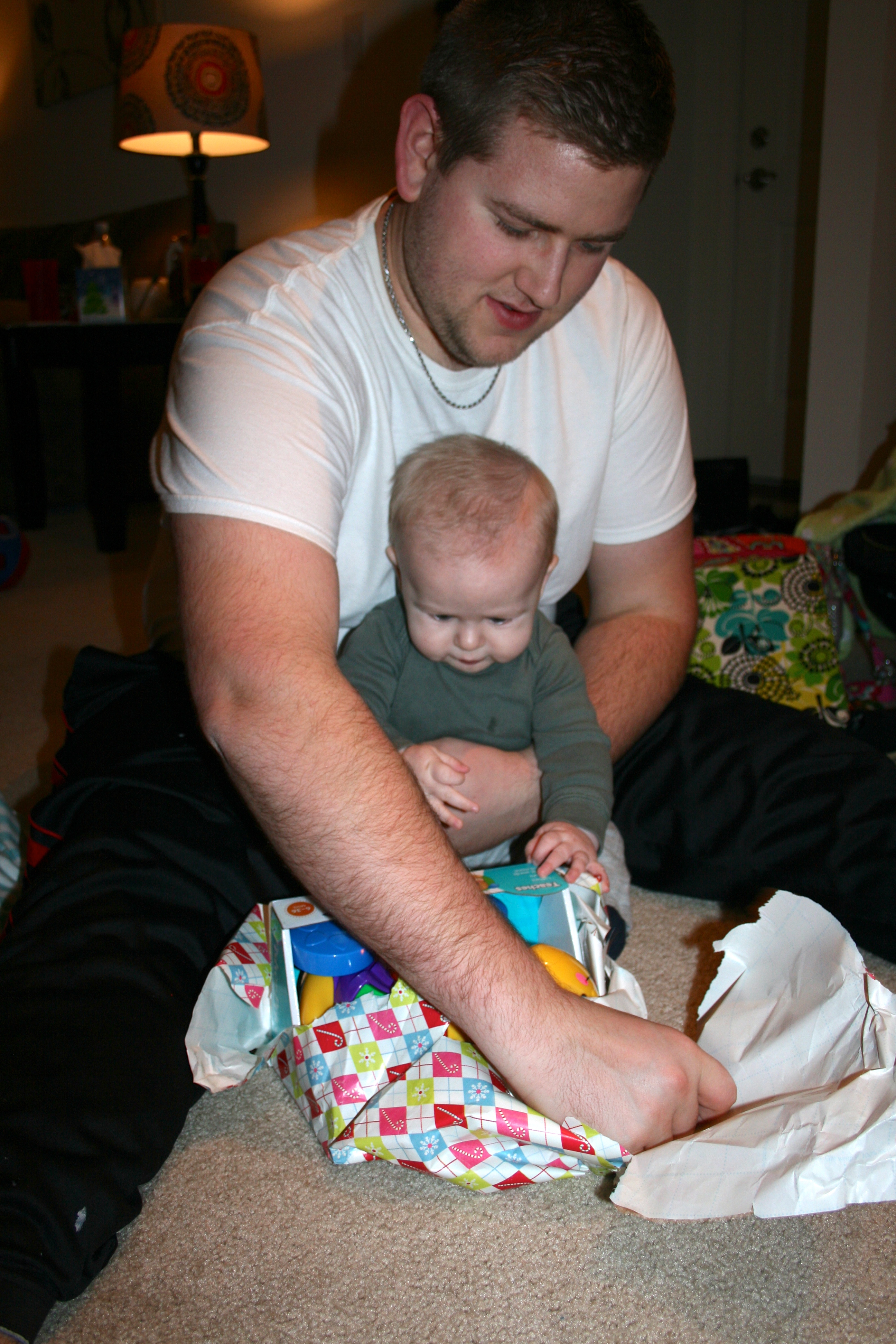 I love Christmas and all that it entails, but what makes Christmas even better is having a baby to share all the fun with! This year Grayson got to open his presents from “New Jersey” Santa early as we left for Indiana before Christmas. I was very shocked that he participated in ripping off the wrapping paper from the presents. He enjoyed it and would get mad if he was unable to get the paper ripped. Little did he know he would get to tear lots more paper off presents when we had all of our Christmas get togethers in Indiana. Brent and I both having divorced parents makes our Holidays a little more hectic than some. We have so many places we have to go it not only was wearing Grayson out, but I was actually pretty exhausted myself. Grayson was so spoiled this year, he probably will be spoiled every year, but that’s perfectly fine with me. Kids are only kids once, so spoil the heck out of them!