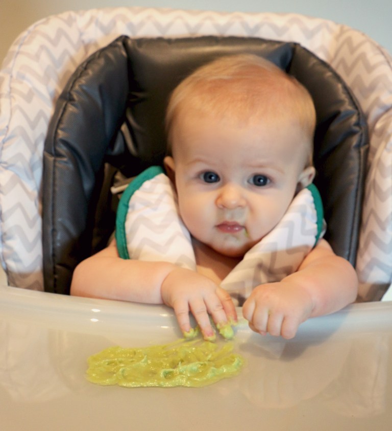 Grayson has only tried a handful of fruits and vegetables as we try them for a period of time before sampling a new food to watch for allergies. He has tried bananas, apples, pears, peaches, prunes, squash, sweet potato, peas, green beans, and avocado. Since we traveled back to Indiana for the Holidays I did give him store bought baby food, as we travel that will be our go to, but while home I plan to provide him with the healthiest options available to him.