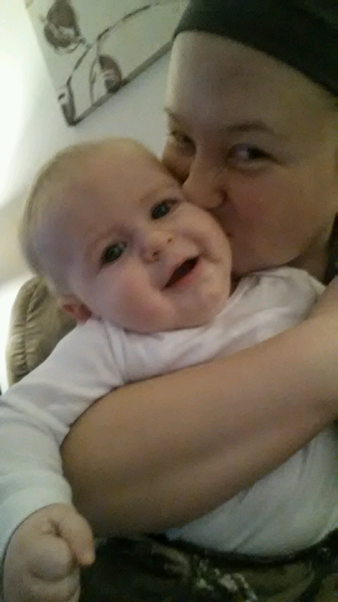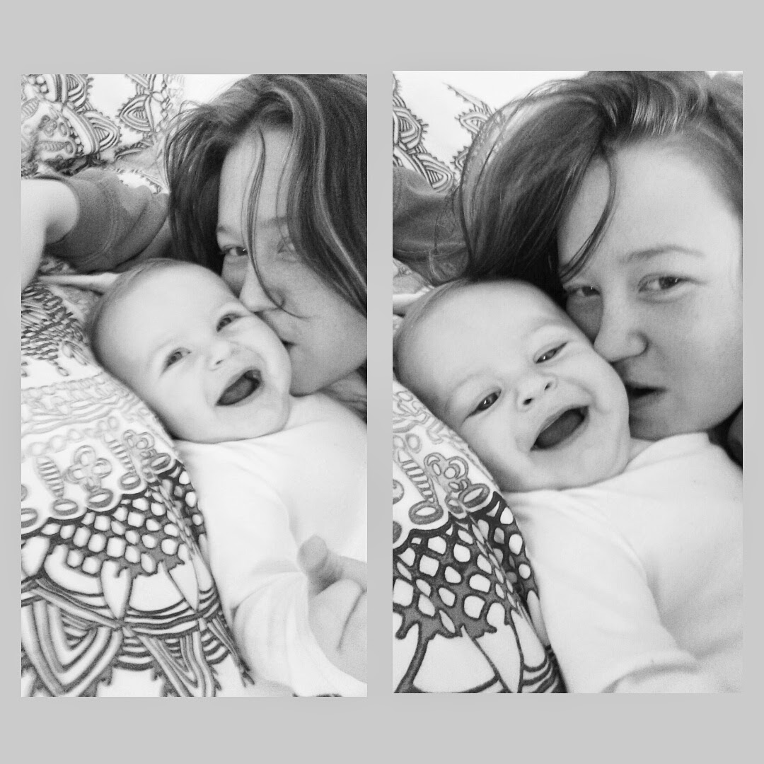 Want to know what melts my heart even more? When he turns his face into mine and has his mouth open and places it right on my cheek as if he knows he too is trying to give me a kiss. So much perfection in one little soul.