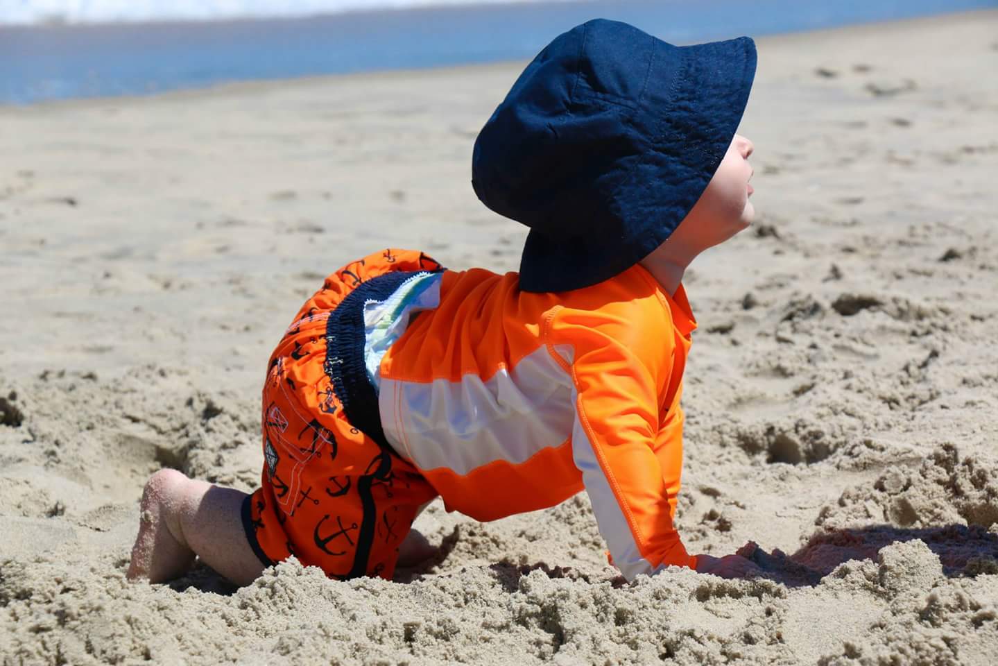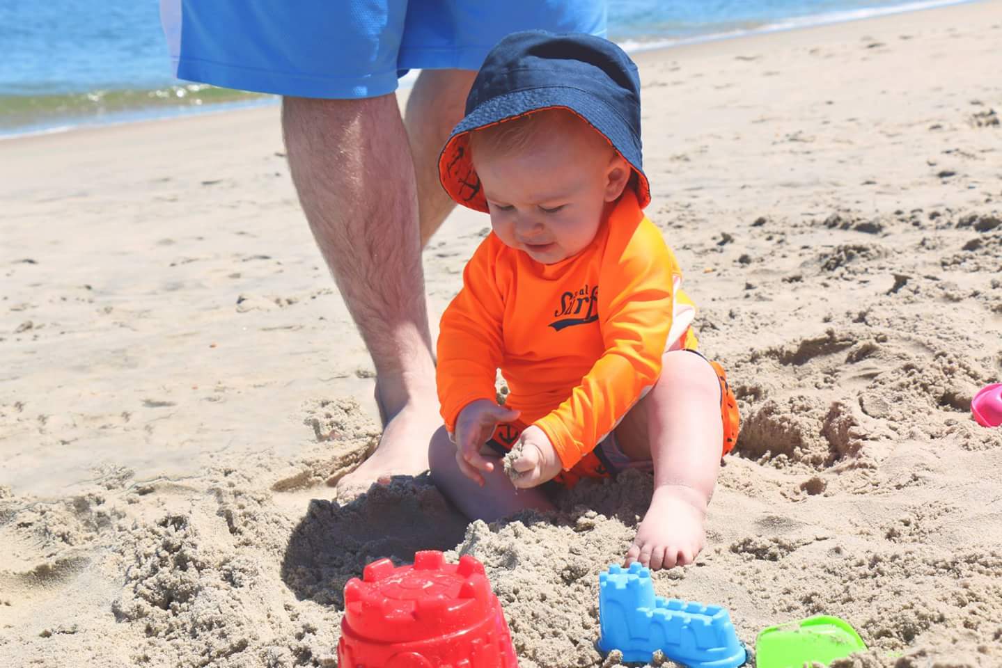 The sand was incredibly soft and the water so beautifully blue, not going to lie, in my head I was telling myself I was in Florida…minus the palm trees. This was Grayson’s first time getting to feel and explore the sand and I think he enjoyed it for the most part. He ended up with a little sand in his mouth, thankfully not on purpose.