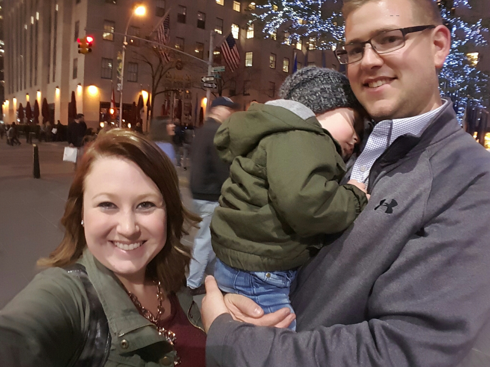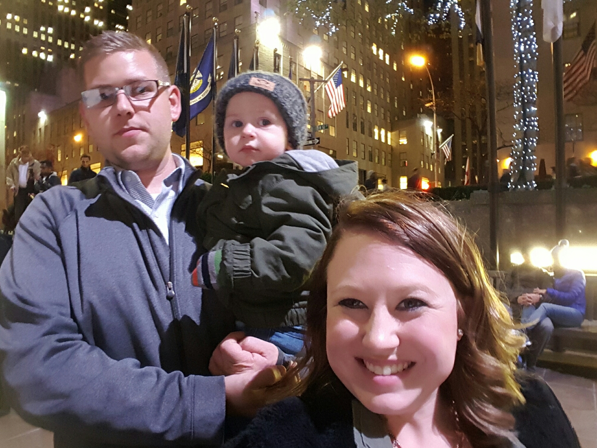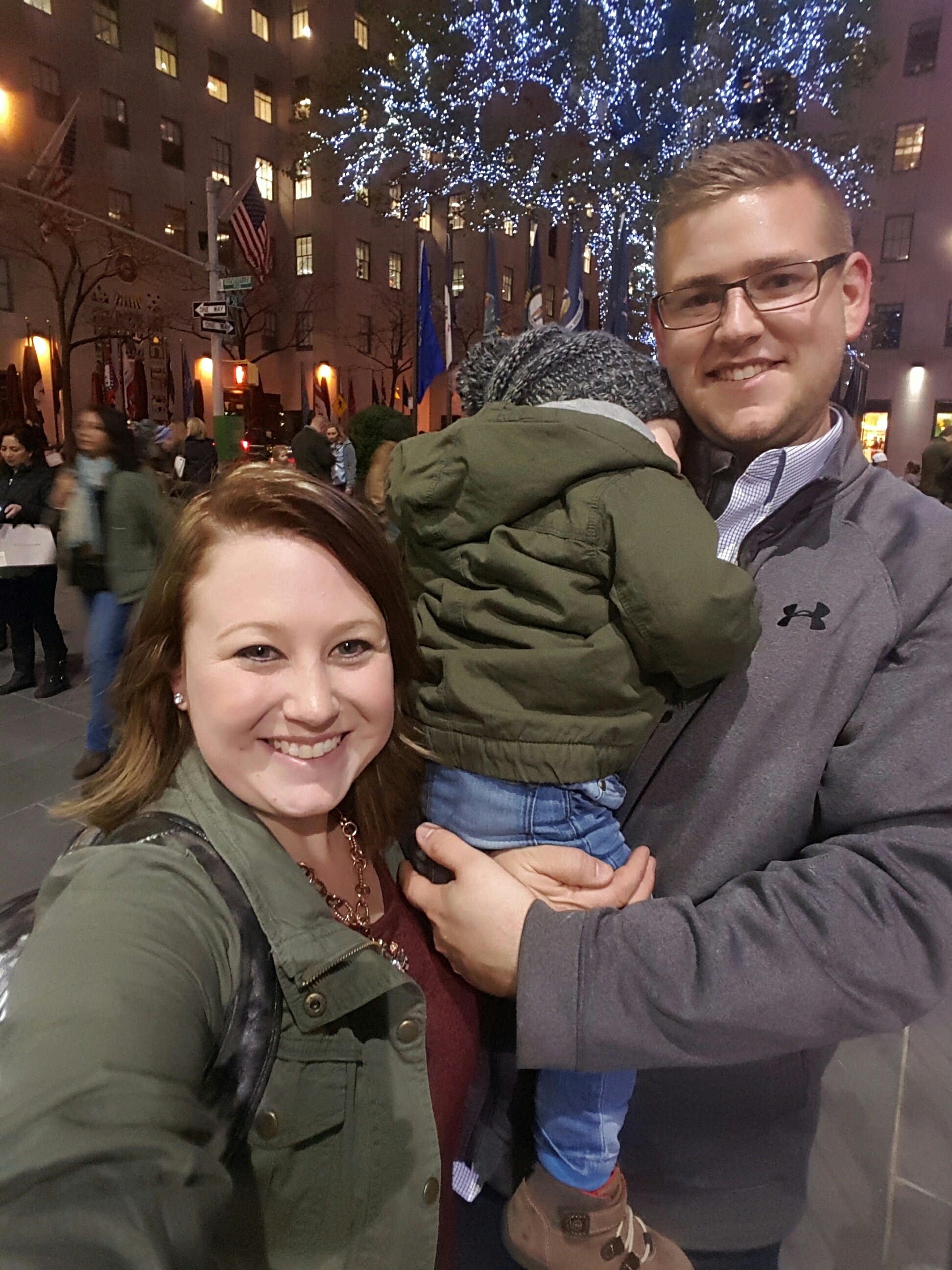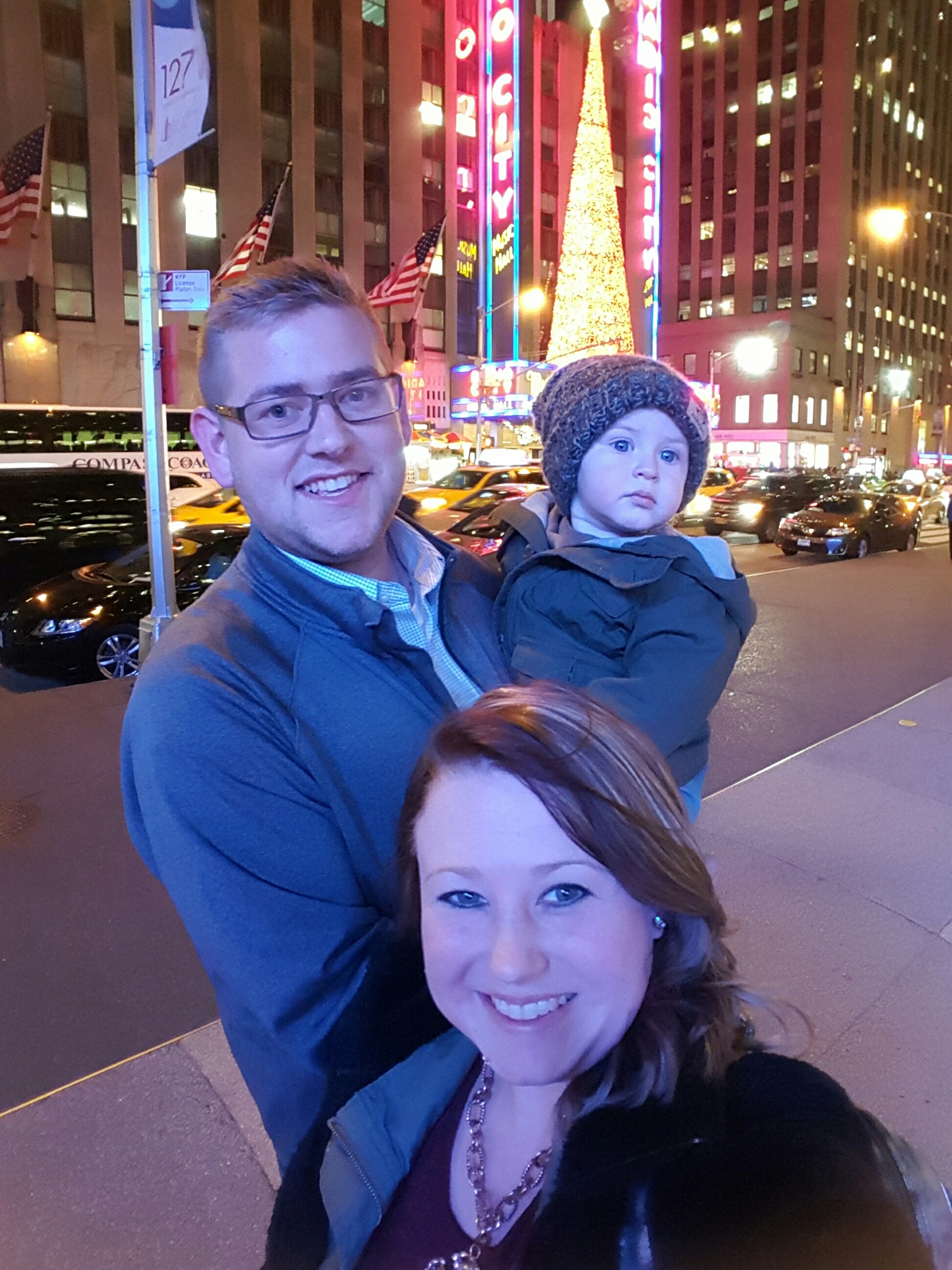Grayson and I spent the day touring the city while Brent worked in the office until dinner time. We ate an incredible dinner at Del Frisco’s Grille at Rockefeller Plaza while Grayson slept through dinner up until we woke him up to eat. Then we walked around the plaza to burn time until our show time. It was so great to be back.