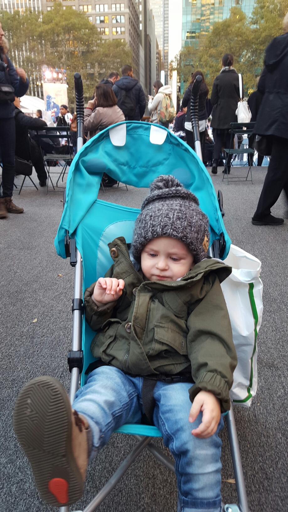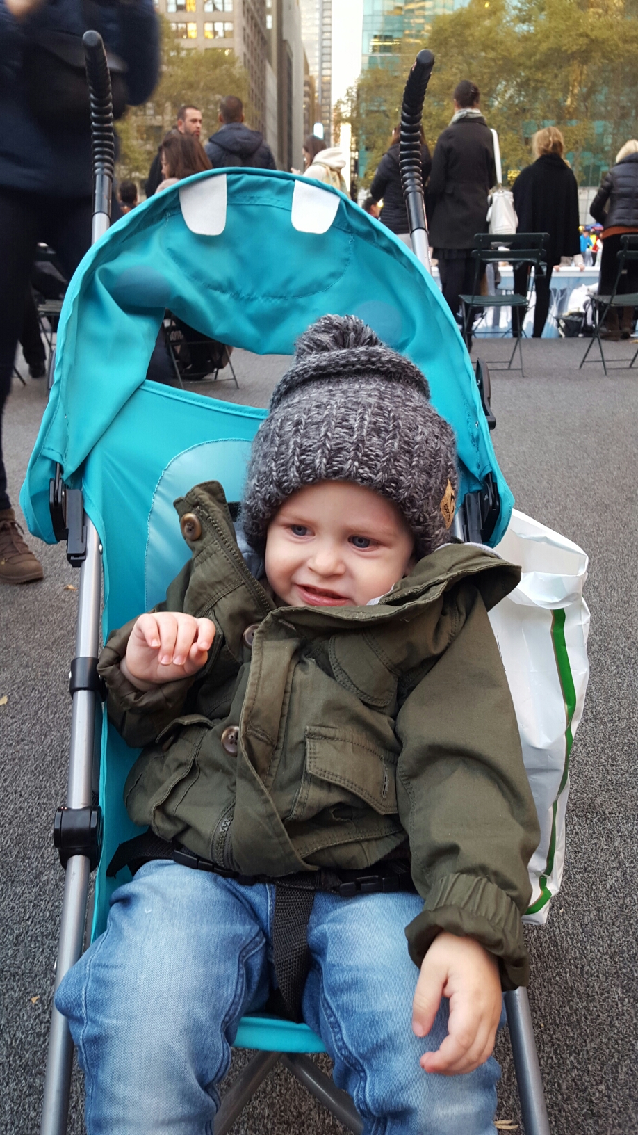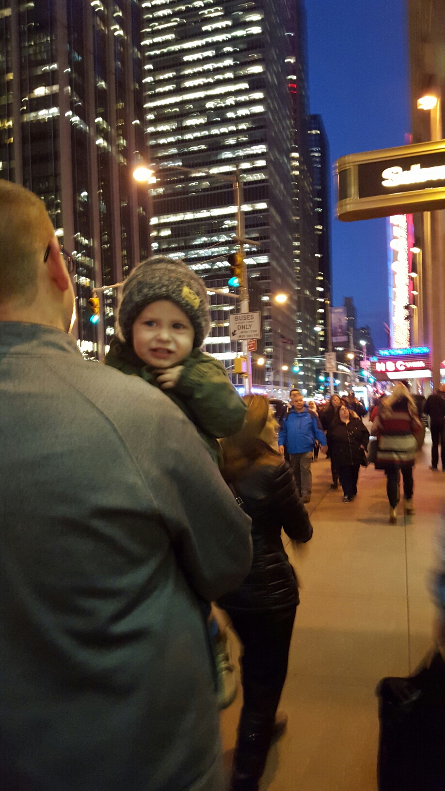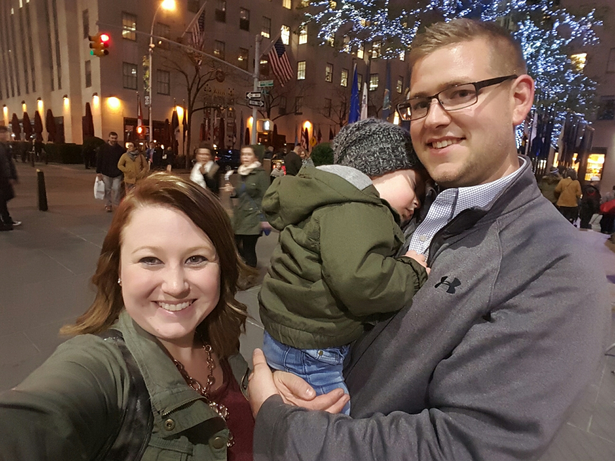 Grayson and I spent the day touring the city while Brent worked in the office until dinner time. We ate an incredible dinner at Del Frisco’s Grille at Rockefeller Plaza while Grayson slept through dinner up until we woke him up to eat. Then we walked around the plaza to burn time until our show time. It was so great to be back.