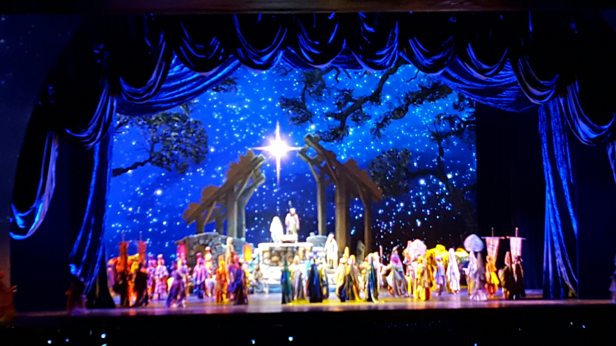 We went to the 7pm show on the first night of the performance. I was nervous taking Grayson since he has never been to anything like this before, but I guess I need to have more faith in him because he surprised me! He did so well. I thought we would have to walk out in the hallway at least once, but we didn’t. He sat on our laps the entire time and was so excited. He clapped at the end of each scene when the crowd clapped. It was the most adorable thing I have ever seen. He would be laying back against me and as soon as he heard claps he instantly jumped up and clapped those little hands as fast as he could.