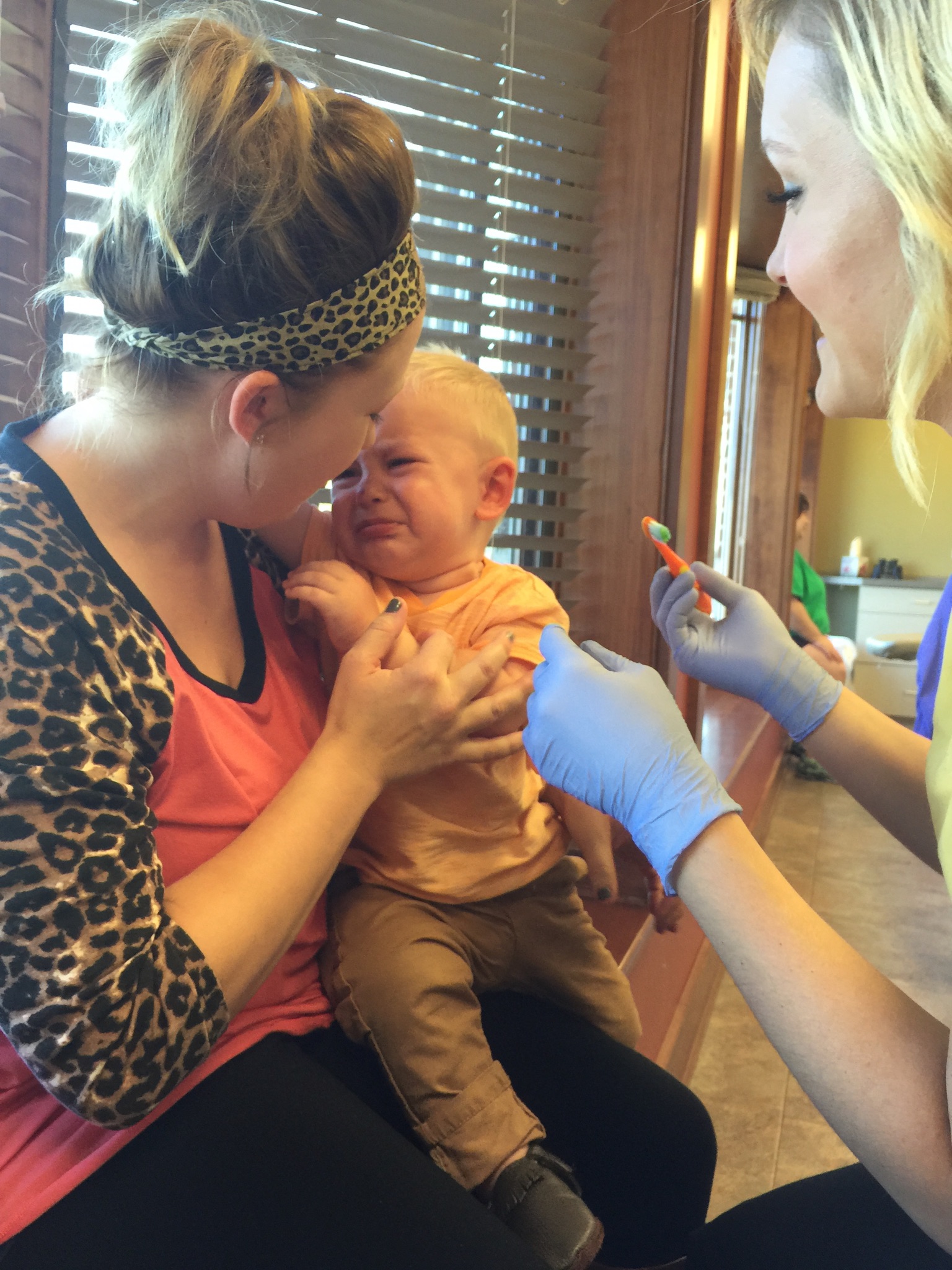 I love the dentist we take him to and the staff there is great! I wasn’t sure how he would do and it actually went how I had imagined it would, him crying. I’m sure his next visit will be the same. 😉