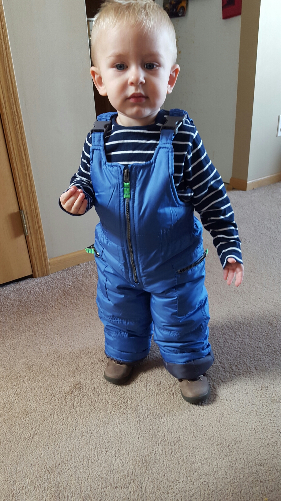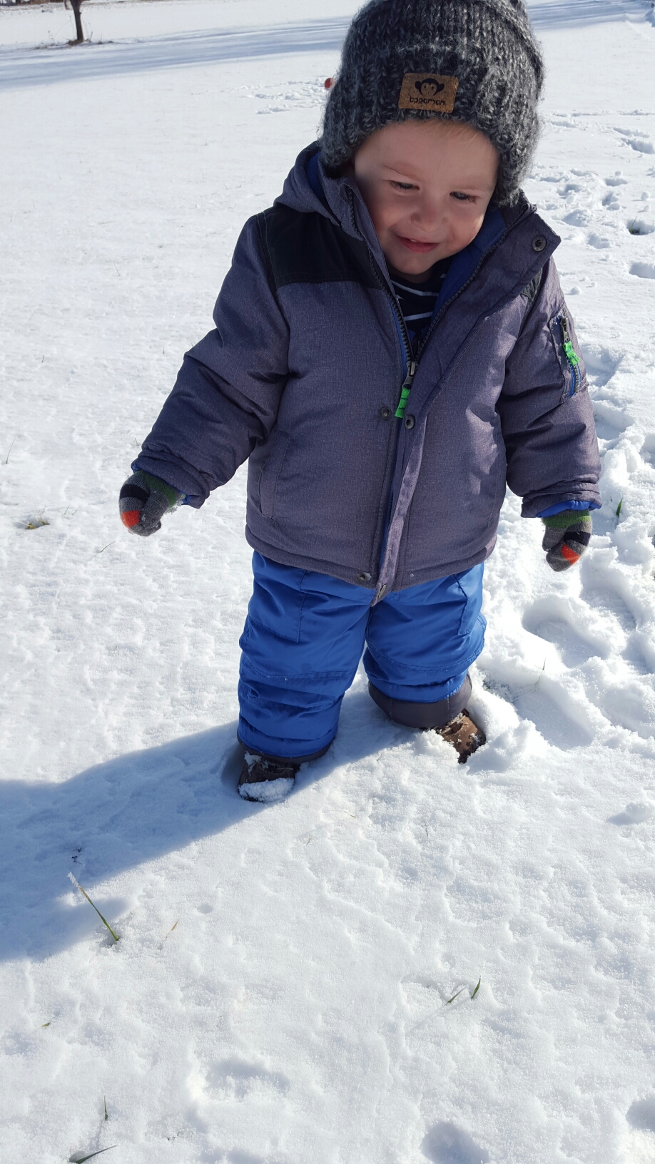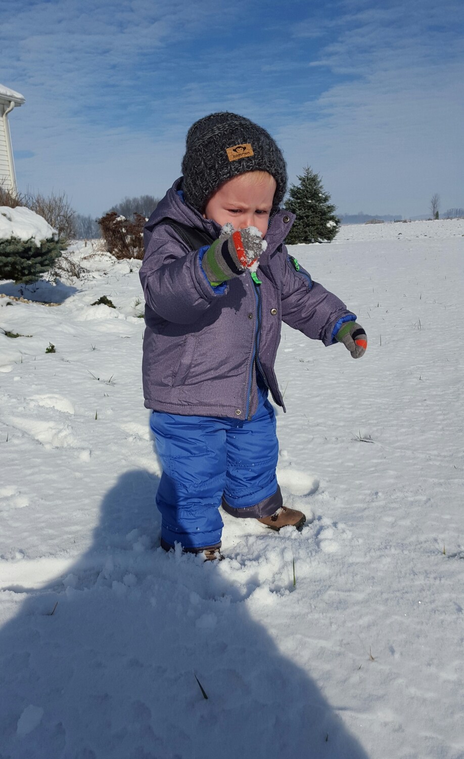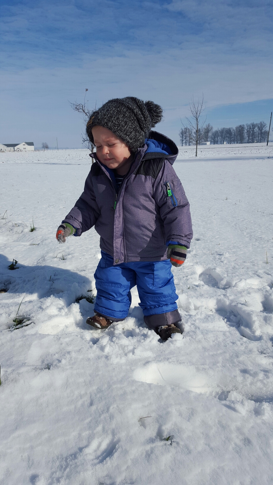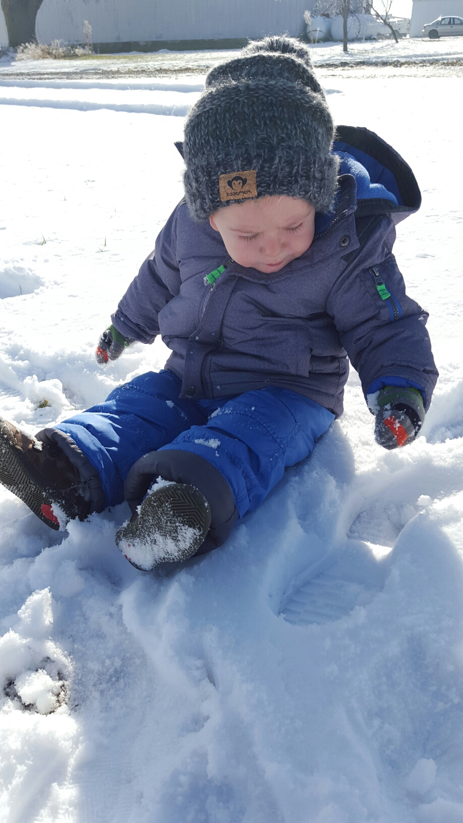 Okay, it’s more like toddler in a snowsuit but still you understand the cuteness. We didn’t get a lot of snow this winter in Indiana which I am totally okay with, but we did get enough I was able to take Grayson out in it to experience for the first time.