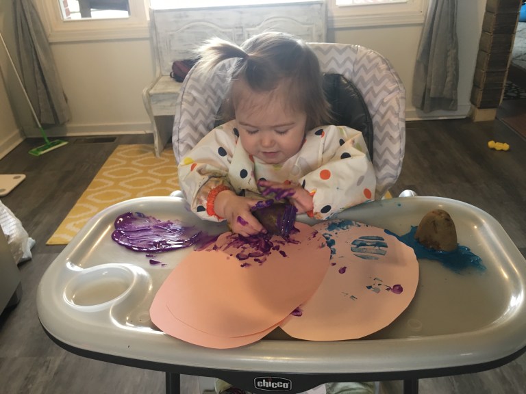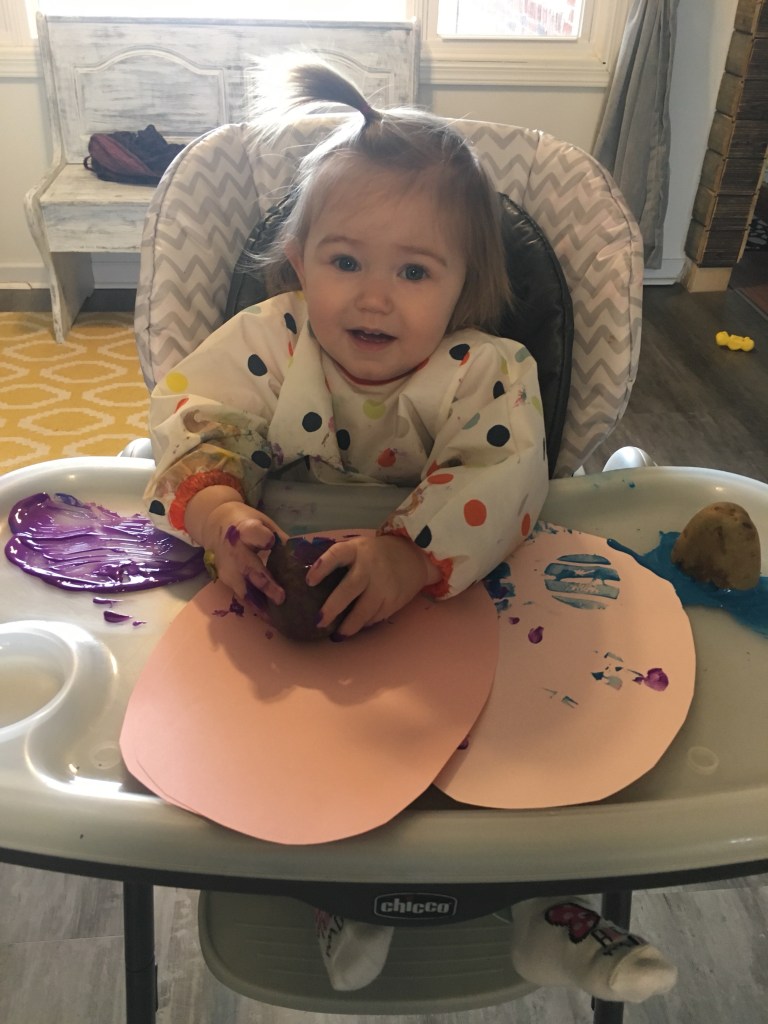 My nephew also loves painting. And he also has the tendecy to pop things in his mouth from time to time. I guess all toddlers do. 🙂 Thanks for sharing! We will be trying out potato stamping soon.