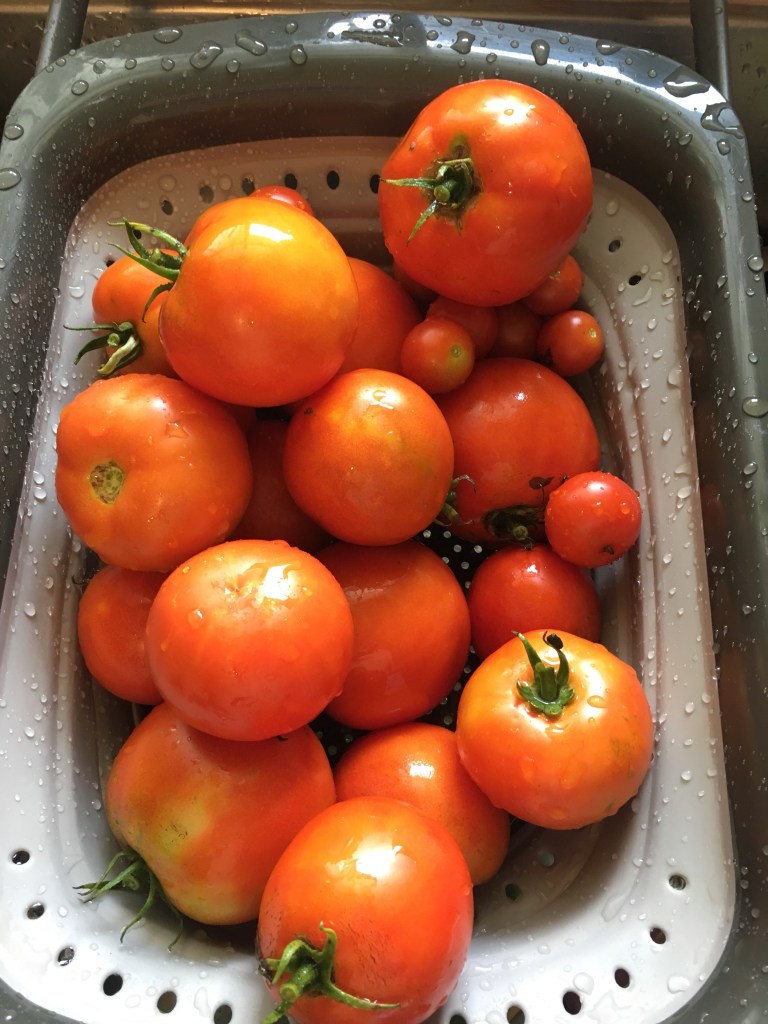 First off, be sure to wash all your produce really good in water before getting started. All the produce I used in the sauce was from my garden minus the garlic.