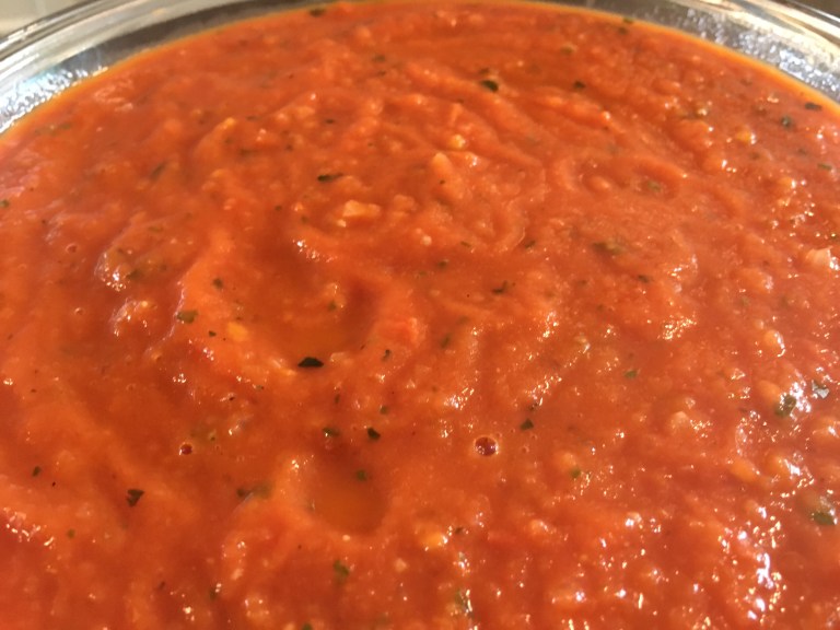 (I used roughly 15 tomatoes yielding a little over 5 cups of sauce.)